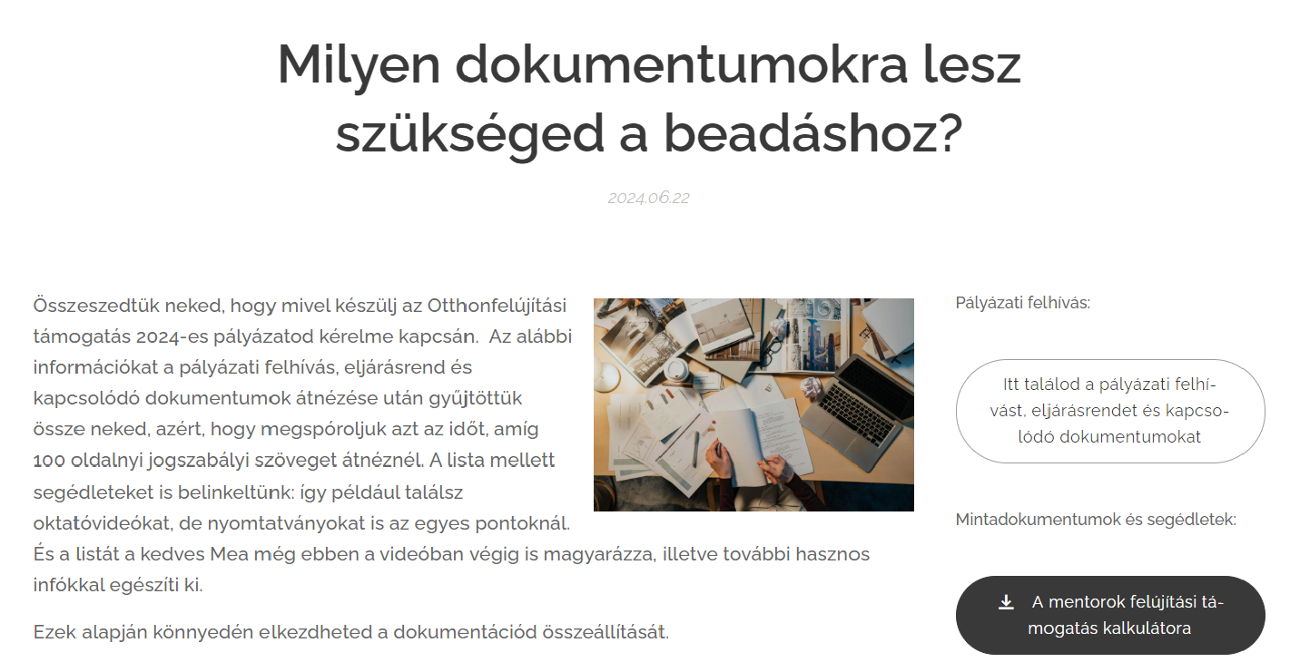 1. A pályázati felhívás és eljárásrend alapján készült, közérthetően megfogalmazott kb. 40 oldalas e-book-ot, amiből a kérdéseid nagy részére választ kaphatsz, itt éred el (Friss):